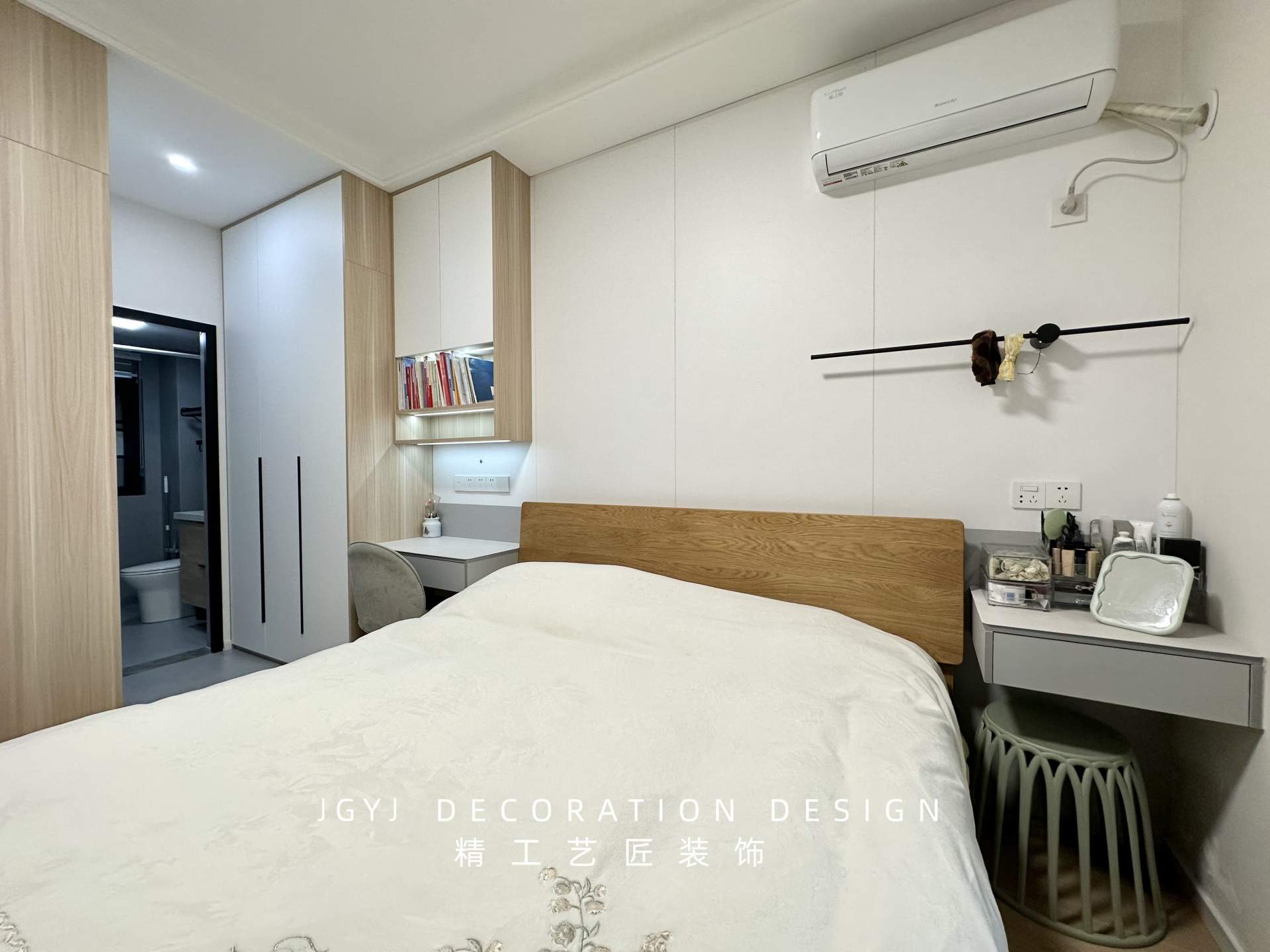 ·衣柜的大容量設(shè)計滿足了衣物收納需求,書桌與床頭的巧妙結(jié)合,為臥室增添了學(xué)習(xí)與閱讀的功能區(qū)域。